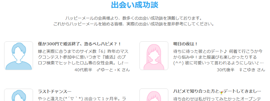 ハッピーメールは2001年にサービスを開始し、20年以上の運営歴があります。それだけの運営ノウハウが構築されているので、利用者は快適にサービスを利用することができます。