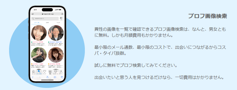 他社には機能が多すぎて操作が複雑なものもありますが、ハッピーメールは必要な機能がシンプルにまとめられています。この辺は、20年超のノウハウが集約されているハッピーメールの強みでもあります。