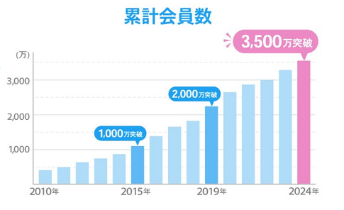繰り返しになりますが、累計登録者数は3,500千万人に達しており、日本最大級の規模を誇ります。